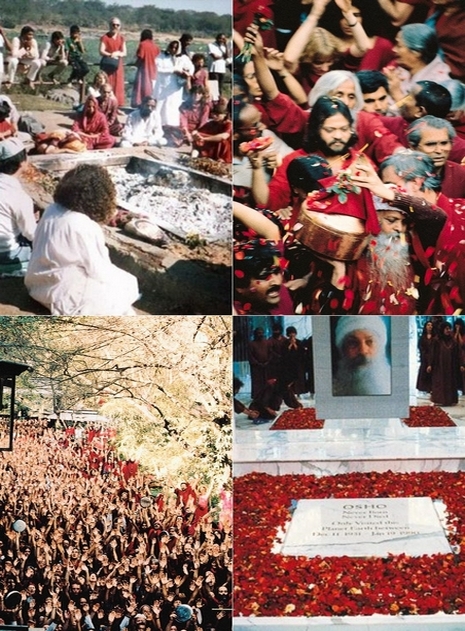 「一整晚我們都坐在那裡看著火堆。我看見奧修身體的各個部位正在燃燒。我一直看著火焰而那能量在我看來正升上天際——奧修的能量。我的頭越來越往上仰,彷彿奧修那成道的靈魂正從火焰裡升起並充滿在上方的天空。一個又一個小時過去了,而夜仍是漆黑的。火焰慢慢消弱,我又覺得冷了起來。然而我並不在乎。這一晚將要結束。人們開始離去。最終我們當中僅有幾個人還留著,坐在微燃的餘燼旁。我聽見一隻鳥兒在某處鳴唱著。