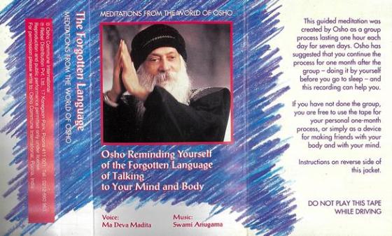 錄音帶是由至少二十年前的印度普那奧修國際社區所發行,錄製了“The Forgotten Language"靜心的全程引導話語與音樂。藉由此引導過程,聆聽者可循序漸進地從身體特定部位,到整個全身,再到無意識心靈,與之對話和聯結。